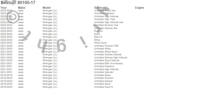 Below is an abbreviated list of applications for the Halftop Soft Top Conversion Kit.