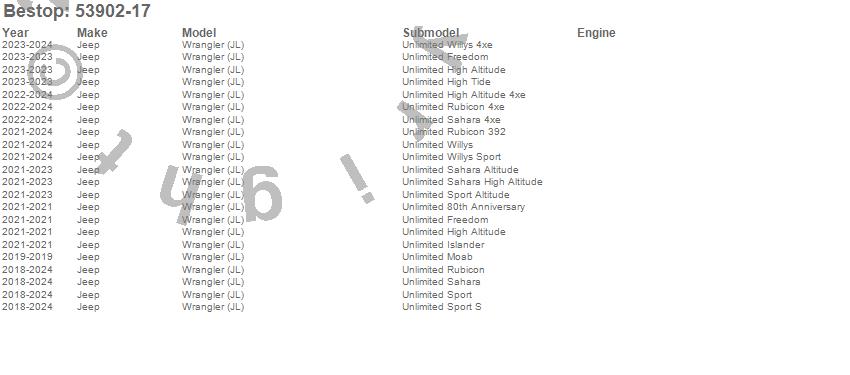 Below is an abbreviated list of applications for the Halftop Soft Top.