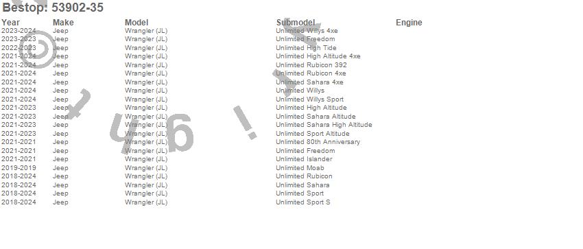 Below is an abbreviated list of applications for the Halftop Soft Top.