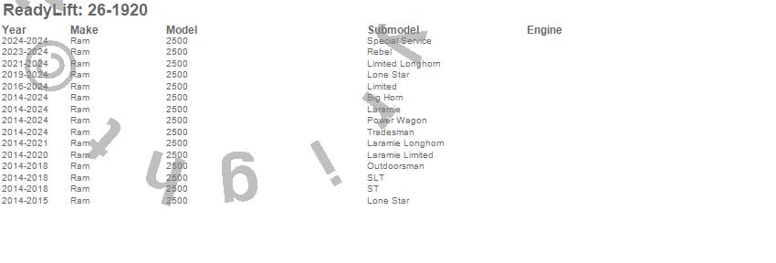 ReadyLift - Coil Spring Spacer Kit P/N 26-1920 Features: