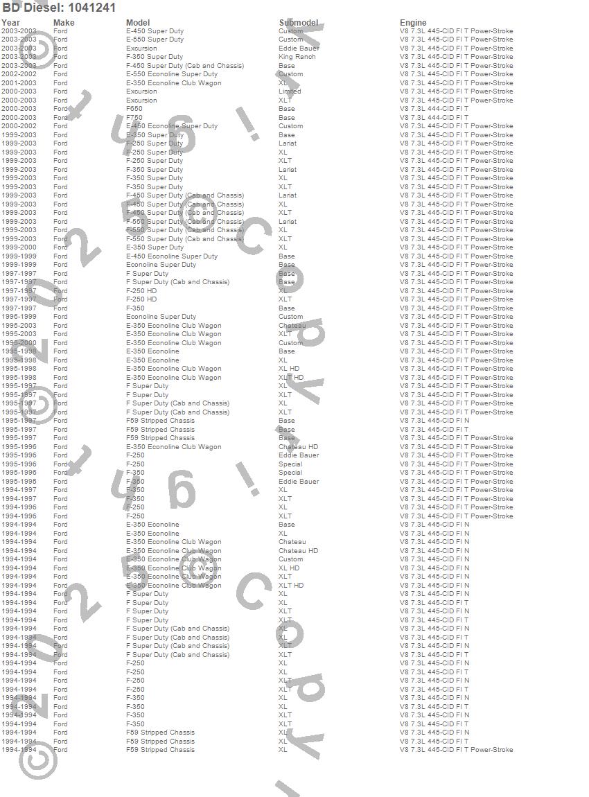E-350 Econoline, E-350 Econoline Club Wagon, E-350 Super Duty, E-450 Econoline Super Duty, E-450 Super Duty, E-550 Econoline Super Duty, E-550 Super Duty, Econoline Super Duty, Excursion, F Super Duty, F-250, F-250 HD, F-250 Super Duty, F-350, F-350 Super Duty, F-450 Super Duty, F-550 Super Duty, F59, F650, F750