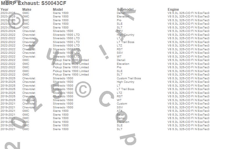 Below is an abbreviated list of applications for the Armor Pro Cat Back Exhaust System.