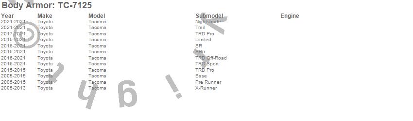 Body Armor - Bed Side Molle System P/N TC-7125 Features: