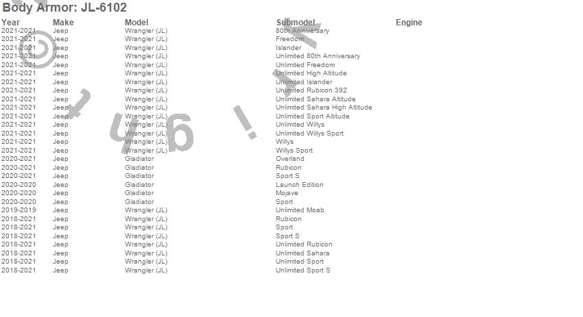 Body Armor - Fender Flares P/N JL-6102 Features:
