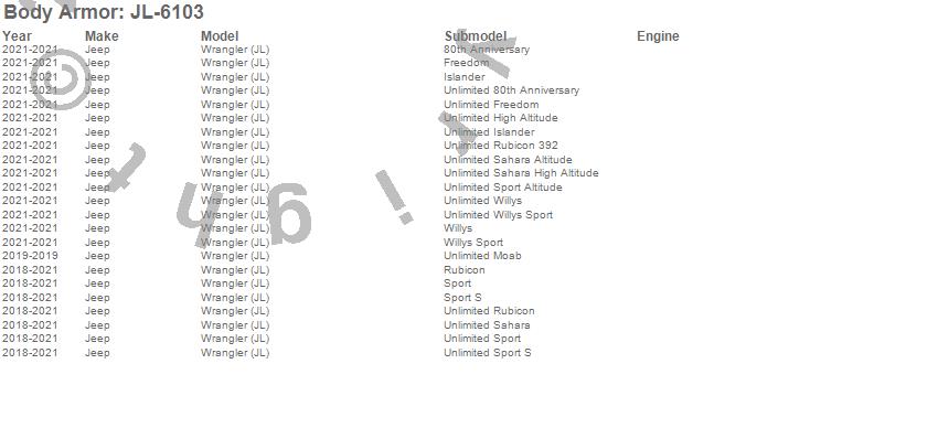 Body Armor - Fender Flares P/N JL-6103 Features: