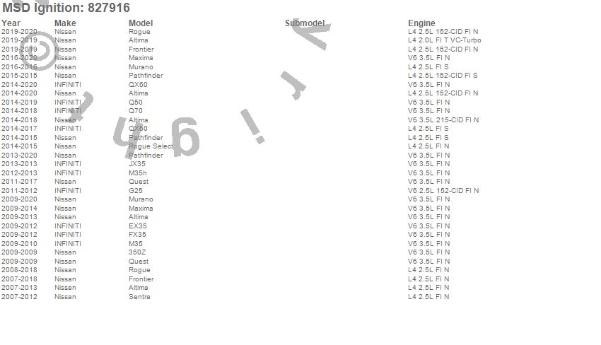 350Z, Altima, EX35, Frontier, FX35, G25, JX35, M35, M35h, Maxima, Murano, Pathfinder, Q50, Q70, Quest, QX60, Rogue, Rogue Select, Sentra, INFINITI