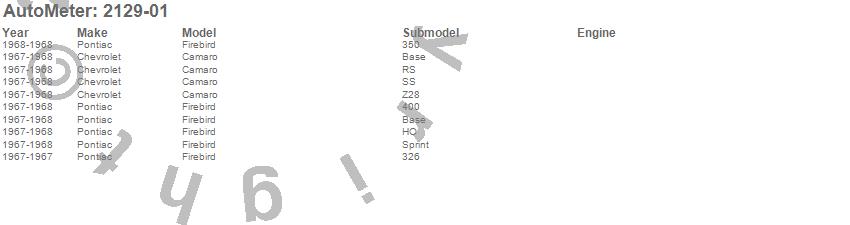 Below is an abbreviated list of applications for the American Muscle Direct Fit Gauge Kit.