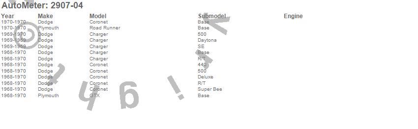 Below is an abbreviated list of applications for the Chrono Direct Fit Gauge Kit.