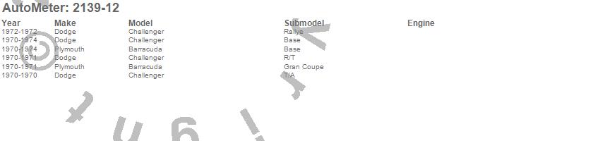 Below is an abbreviated list of applications for the Sport-Comp II 6 Gauge Set TACH/MPH/FUEL/OILP/WTMP/VOLT.