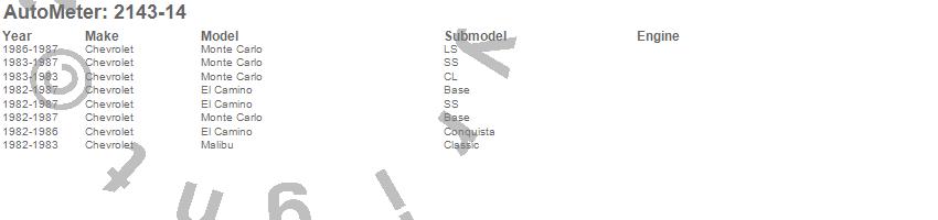Below is an abbreviated list of applications for the Ultra-Lite II Direct Fit Gauge Kit.