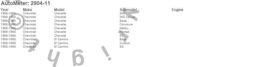 Below is an abbreviated list of applications for the Sport-Comp Direct Fit Gauge Kit.