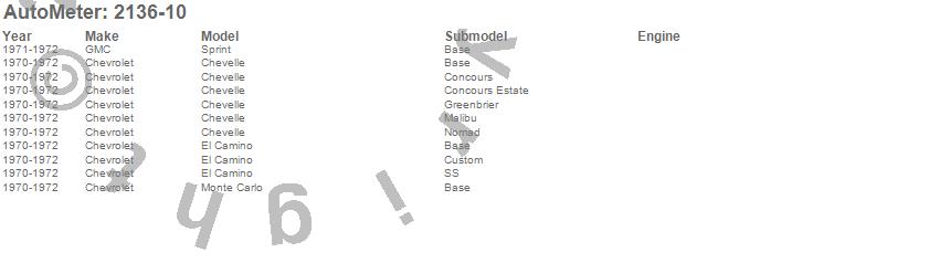 Below is an abbreviated list of applications for the Phantom II 6 Gauge Set RPM/MPH/FUEL/OILP/WTMP/VOLT.