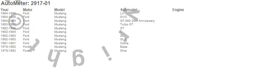 Below is an abbreviated list of applications for the American Muscle Direct Fit Gauge Kit.
