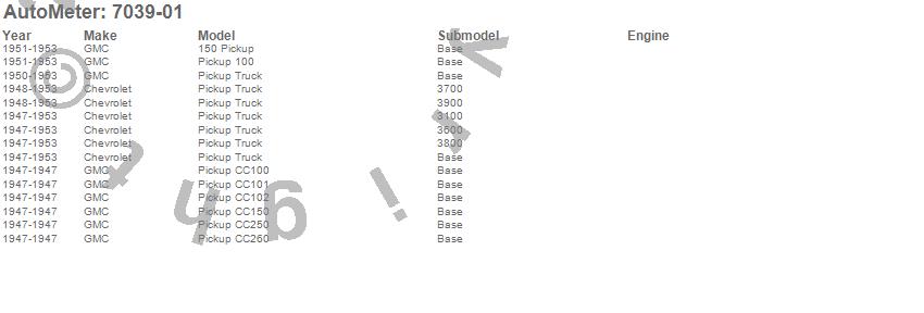 Below is an abbreviated list of applications for the American Muscle Direct Fit Gauge Kit.