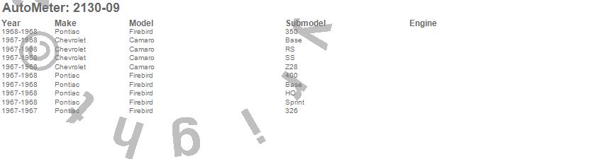 Below is an abbreviated list of applications for the Phantom 6 Gauge Set TACH/MPH/FUEL/OILP/WTMP/VOLT.