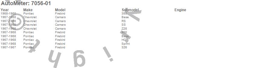 Below is an abbreviated list of applications for the American Muscle Direct Fit Gauge Kit.