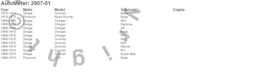 Below is an abbreviated list of applications for the American Muscle Direct Fit Gauge Kit.