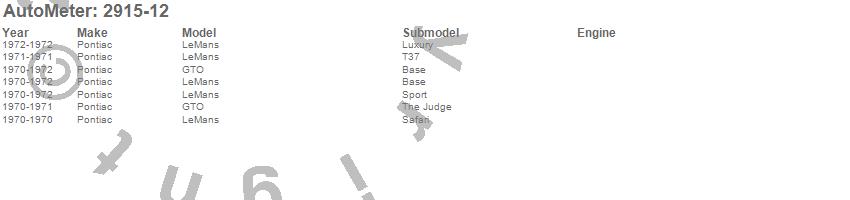 Below is an abbreviated list of applications for the Sport-Comp II Direct Fit Gauge Kit.