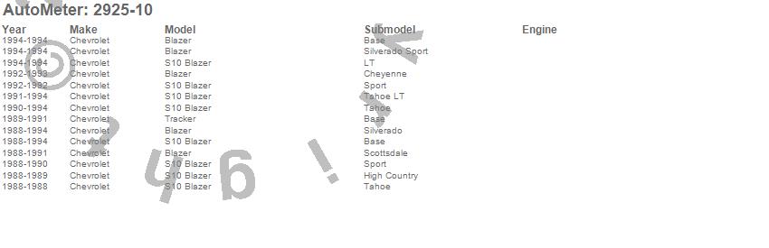 Below is an abbreviated list of applications for the Phantom II Direct Fit Gauge Kit.