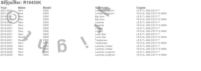 Skyjacker - Suspension Lift Kit P/N R19450K Features: