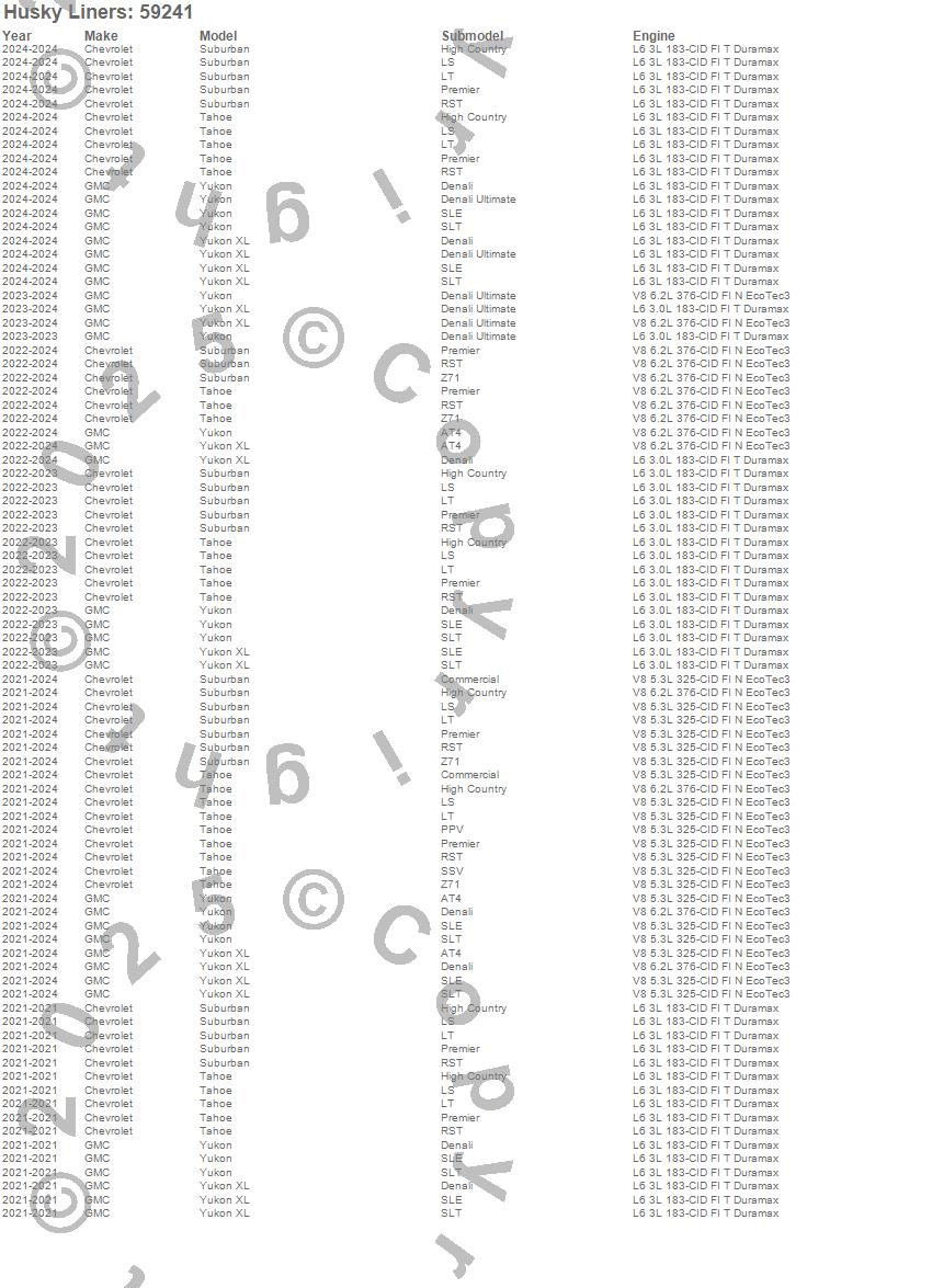 Below is an abbreviated list of applications for the Custom Molded Mud Guards.