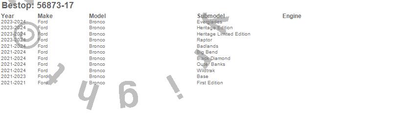 Below is an abbreviated list of applications for the Trektop Slantback Soft Top.