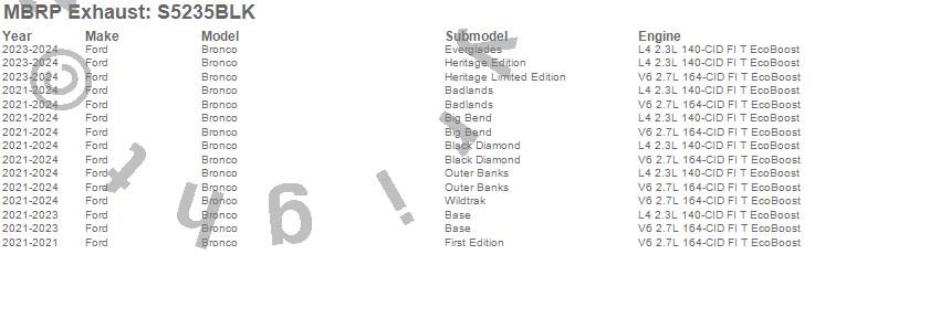Below is an abbreviated list of applications for the Armor BLK Cat Back Performance Exhaust System.