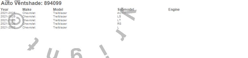 Below is an abbreviated list of applications for the Ventvisor Low Profile Deflector 4 pc..