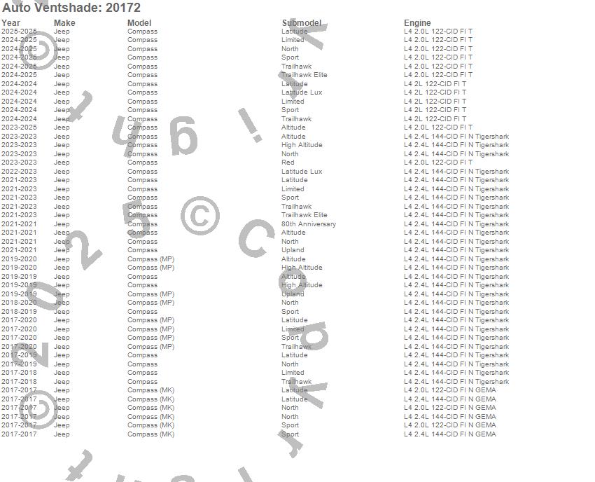 Below is an abbreviated list of applications for the Carflector Stone/Bug Deflector.