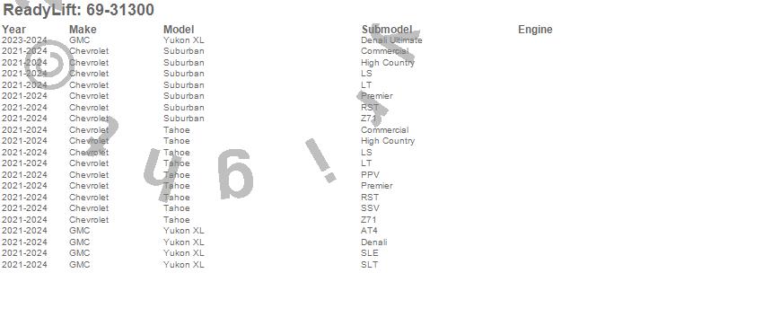ReadyLift - SST Lift Kit P/N 69-31300 Features: