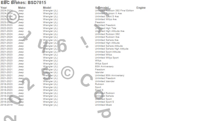 Below is an abbreviated list of applications for the BSD Series Sport Rotor Set w/Ultra Quiet V Slot Configuration.