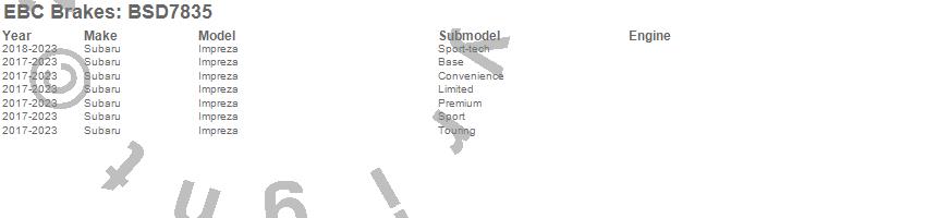 Below is an abbreviated list of applications for the BSD Series Sport Rotor Set w/Ultra Quiet V Slot Configuration.