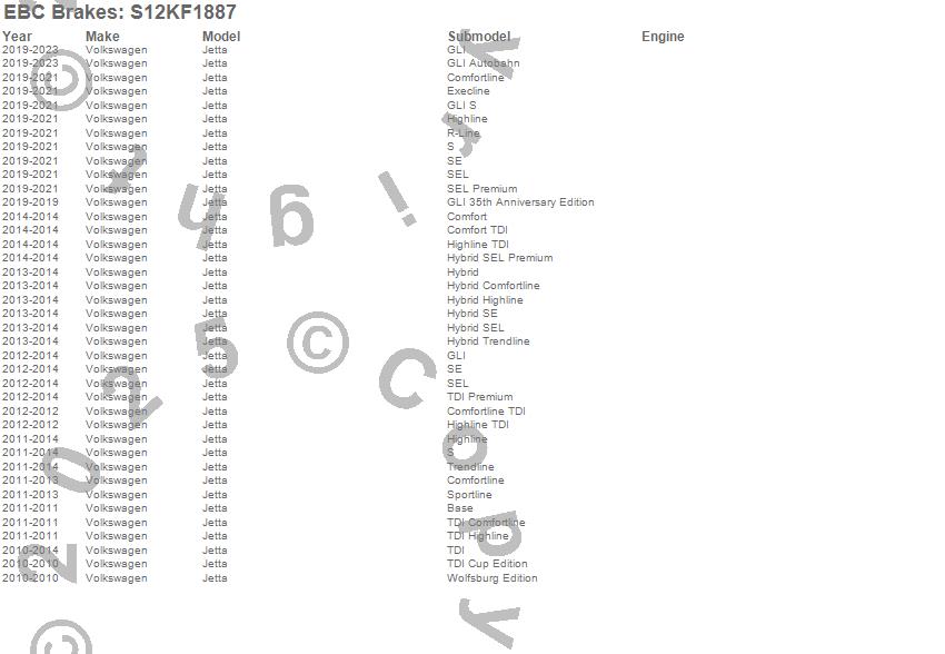 Below is an abbreviated list of applications for the S12 Kits Redstuff and RK Rotors.