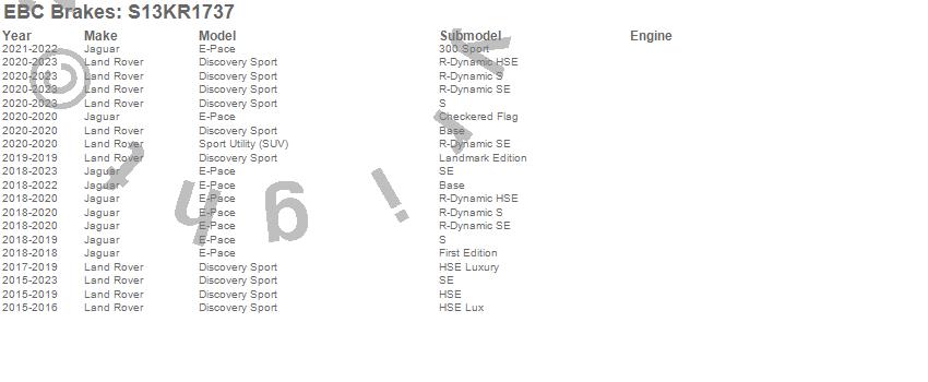 Below is an abbreviated list of applications for the S13 Kits Yellowstuff and RK Rotors.