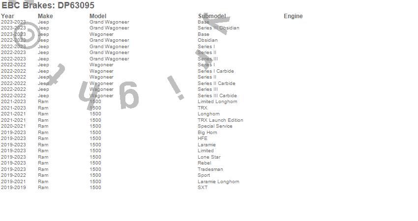 Below is an abbreviated list of applications for the 6000 Series Greenstuff Truck/SUV Brakes Disc Pads.