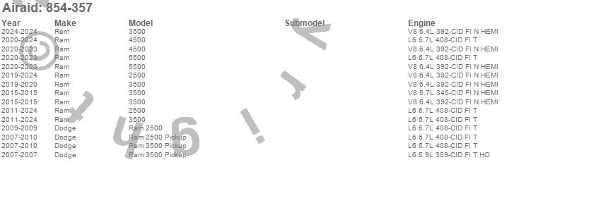 Airaid - Air Filter P/N 854-357 Features: