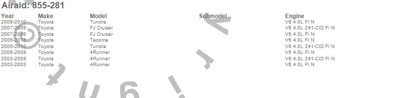 Below is an abbreviated list of applications for the Air Filter.