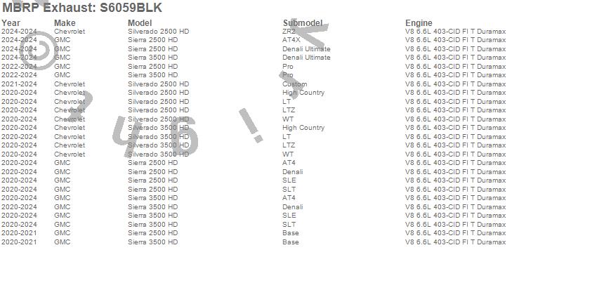 Below is an abbreviated list of applications for the Armor BLK Filter Back Exhaust System.