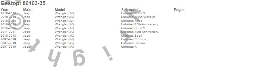 Below is an abbreviated list of applications for the Halftop Soft Top Conversion Kit.