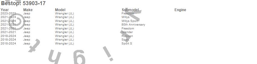 Below is an abbreviated list of applications for the Halftop Soft Top.