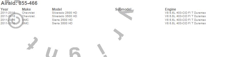 Below is an abbreviated list of applications for the Air Filter.