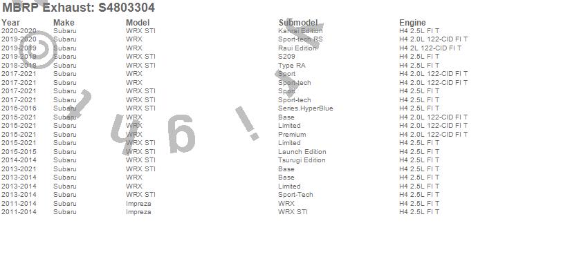 Below is an abbreviated list of applications for the Armor Pro Cat Back Exhaust System.