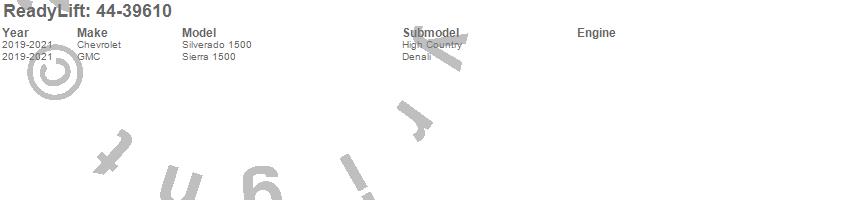ReadyLift - Lift Kit P/N 44-39610 Features: