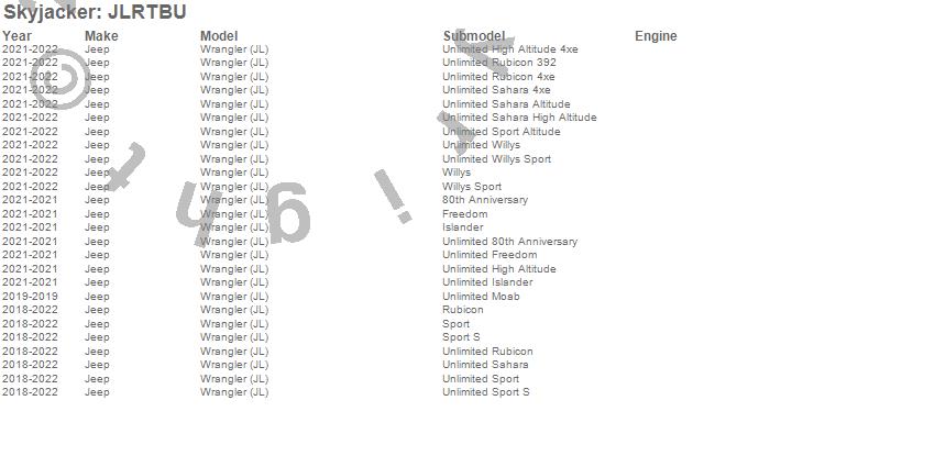 Wrangler (JL), Jeep, 2022, 2021, 2020, 2019, 2018