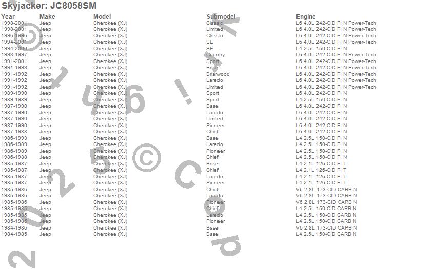 Skyjacker - Component Box P/N JC8058SM Features: