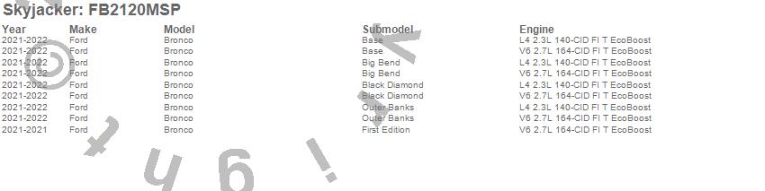 Skyjacker - Suspension Lift Kit P/N FB2120MSP Features: