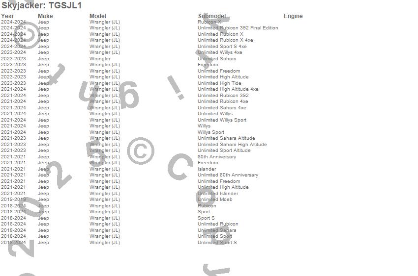 Skyjacker - Spare Tire Support Kit P/N TGSJL1 Features: