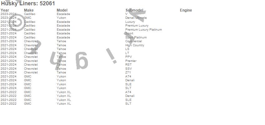 Below is an abbreviated list of applications for the X-act Contour Floor Liner.