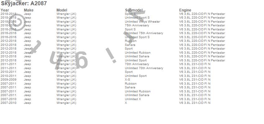 Wrangler (JK), Jeep, 2018, 2017, 2016, 2015, 2014, 2013, 2012, 2011, 2010, 2009, 2008, 2007