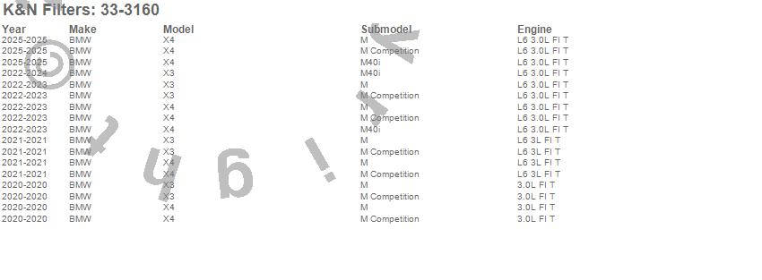 Below is an abbreviated list of applications for the Air Filter.
